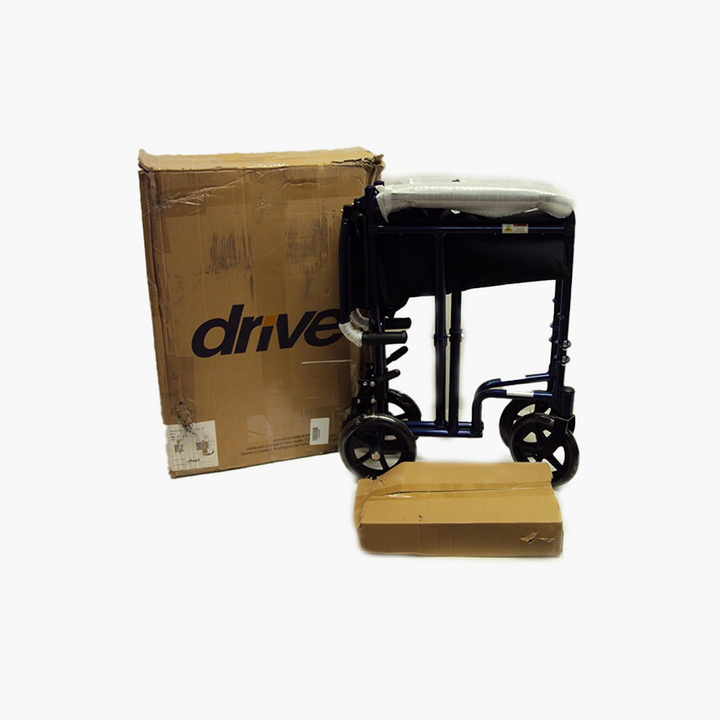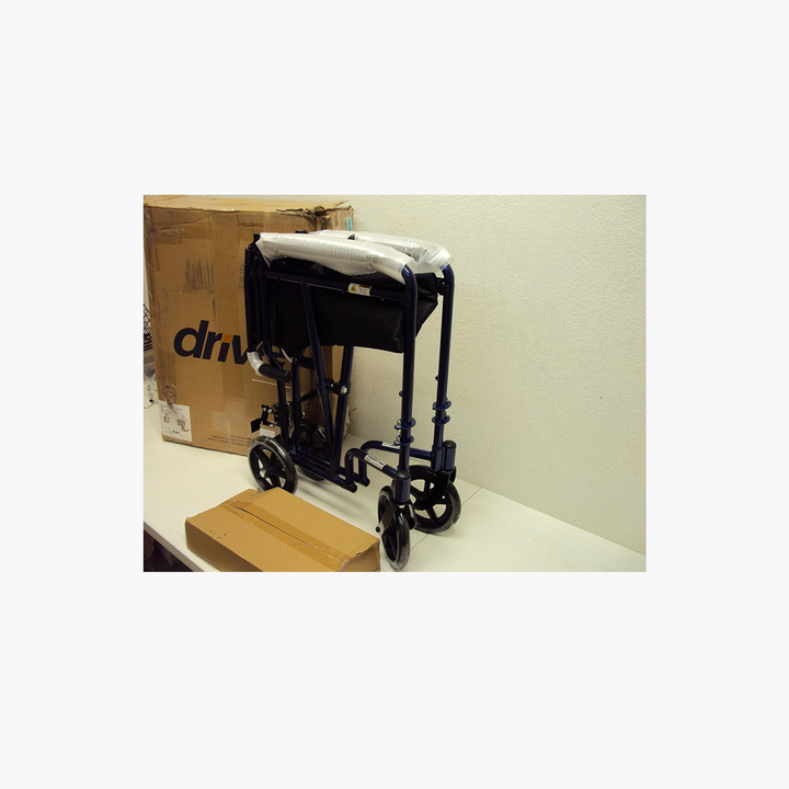 The Aluminum Transport Chair, 19" Blue (ATC19-BL) from Drive Medical is a lightweight, compact mobility aid designed to offer comfortable and convenient transportation for individuals with limited mobility. It’s particularly useful for caregivers who need a transport chair that is easy to maneuver, store, and transport.