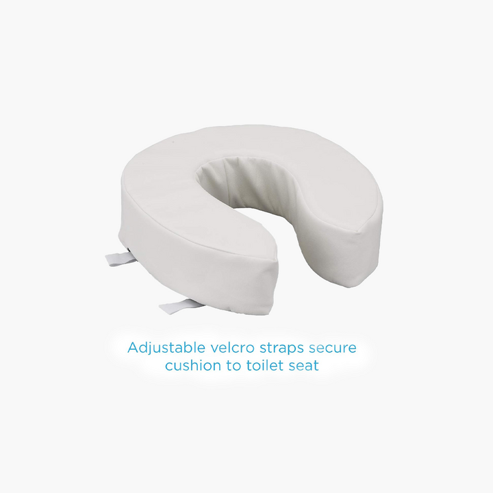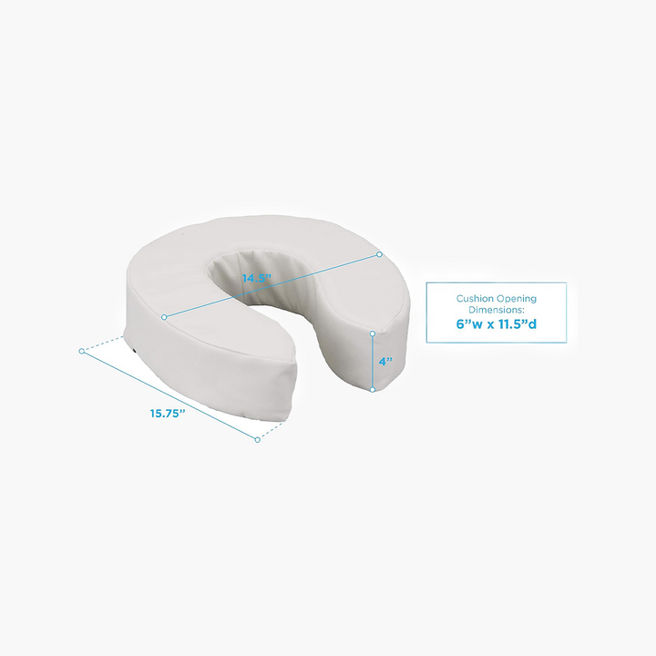 - GIVE YOUR TOILET SEAT A CUSHION & RISER with a 4” thick toilet pad attachment. The foam cushion minimizes pressure on sensitive areas and provides added comfort. Cushion will compress giving variable elevation depending on weight of user.