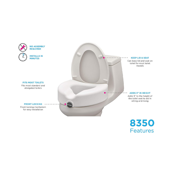 - GREAT SOLUTION to aid user getting on and off the toilet by raising the toilet seat 5”.
