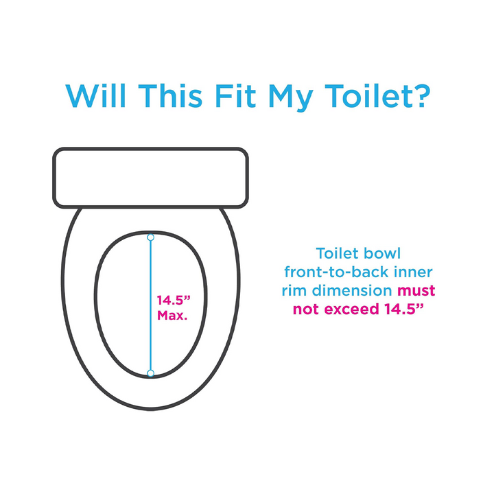 - SIZING: Fits most Standard and Elongated Toilet Seats. Inner top rim to inner bottom rim cannot exceed 14.5”.
