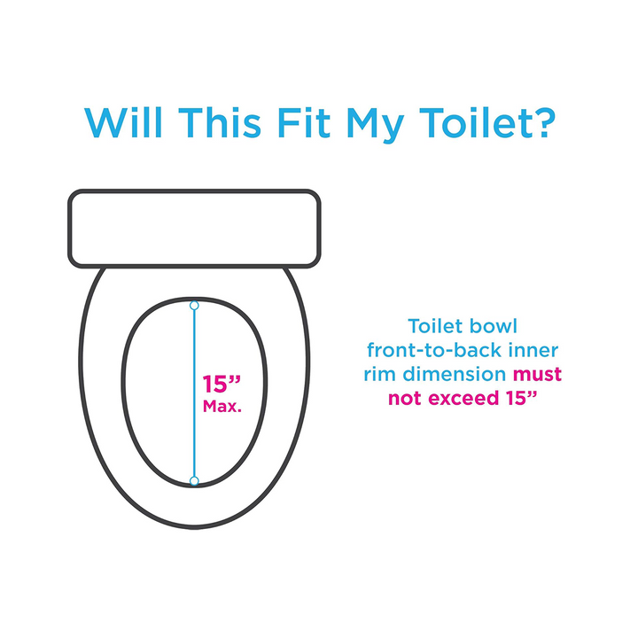 - SIZING: Fits most Standard and Elongated Toilet Seats. The measurement of the toilet inner top rim to inner bottom rim cannot exceed 15”